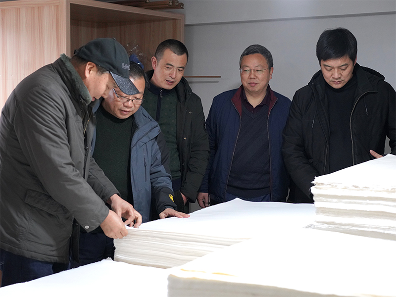 2021年1月26日,休寧縣政協(xié)主席儲(chǔ)曉華來公司調(diào)研徽州楮皮紙制作技藝傳承和發(fā)展情況。